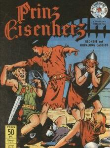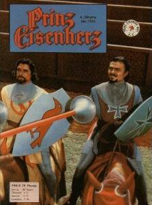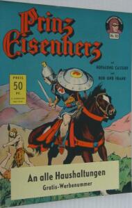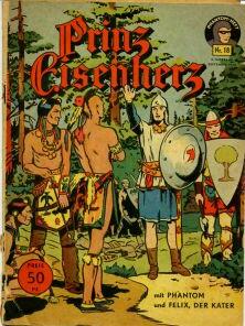 Der erste spektakuläre Nachkriegsauftritt des Prinzen mit seinen schwarzbraunen Sundaypages mit deutschen Texten in der Badischen »Illustrierten Woche« war im Jahre 1950 erfolgt. Er hatte viel Beachtung gefunden und brachte dem Wochenblatt eine namhafte Auflagensteigerung. Jetzt, anfangs 1950, wurden Jugendliche vom Handel erstmals als Zielgruppe entdeckt. Deshalb zog der neu in Deutschland tätig werdende Aller-Verlag, 1952, aus Dänemark kommend, mit einer Comic-Heftreihe „Phantom“ nach, die sich aus amerikanischen Comicserien mit deutschen Texten speiste. Prinz Eisenherz war eine der circa 10 bis 12 Serien. Diese jetzt in den Phantom-Heften zum Abdruck gelangten Teile der Eisenherz-Saga waren bis dahin von der Badischen „Illustrierten Woche“ noch unveröffentlicht.