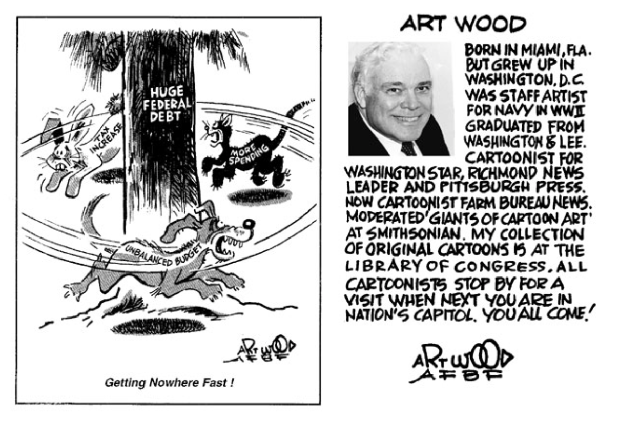 3Im Alter von 16 Jahren begann Wood (der als „Art“ bekannt ist) als Aufzugsjunge und Gepäckaufseher in der Library of Congress in Washington, D.C. zu arbeiten. Er tat dies, um Zugang zu den Büchern der Bibliothek über Cartoons und Karikaturen zu erhalten.
