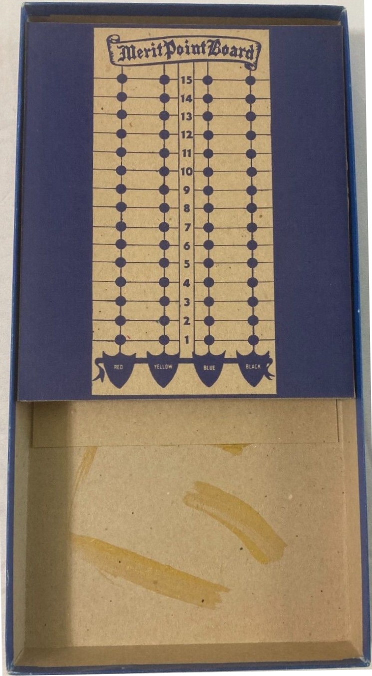 Im Kasten befinden sich der Dreher, die Verdienstpunktetafel und die Verdienstkarte von Prinz Eisenherz.