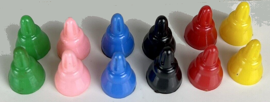 4 Spielfiguren in 4 verschiedenen Farben. 4 Münzen in passenden Farben.